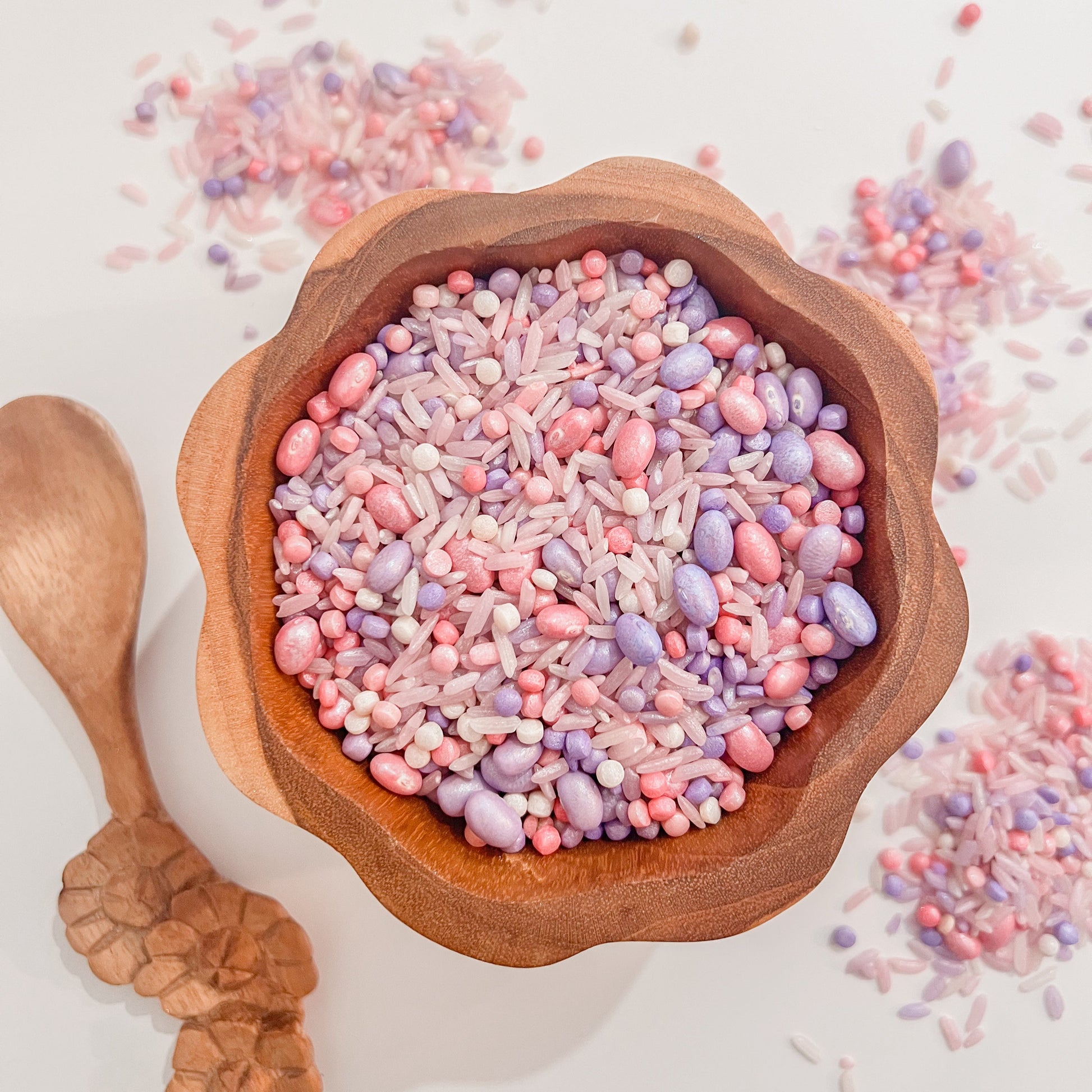 Each container contains a beautiful mix of coloured grains, beans and pasta! You can scoop and pour it, add it to a sensory bottle, use them for small world or bookish play or just simply run your fingers through it!