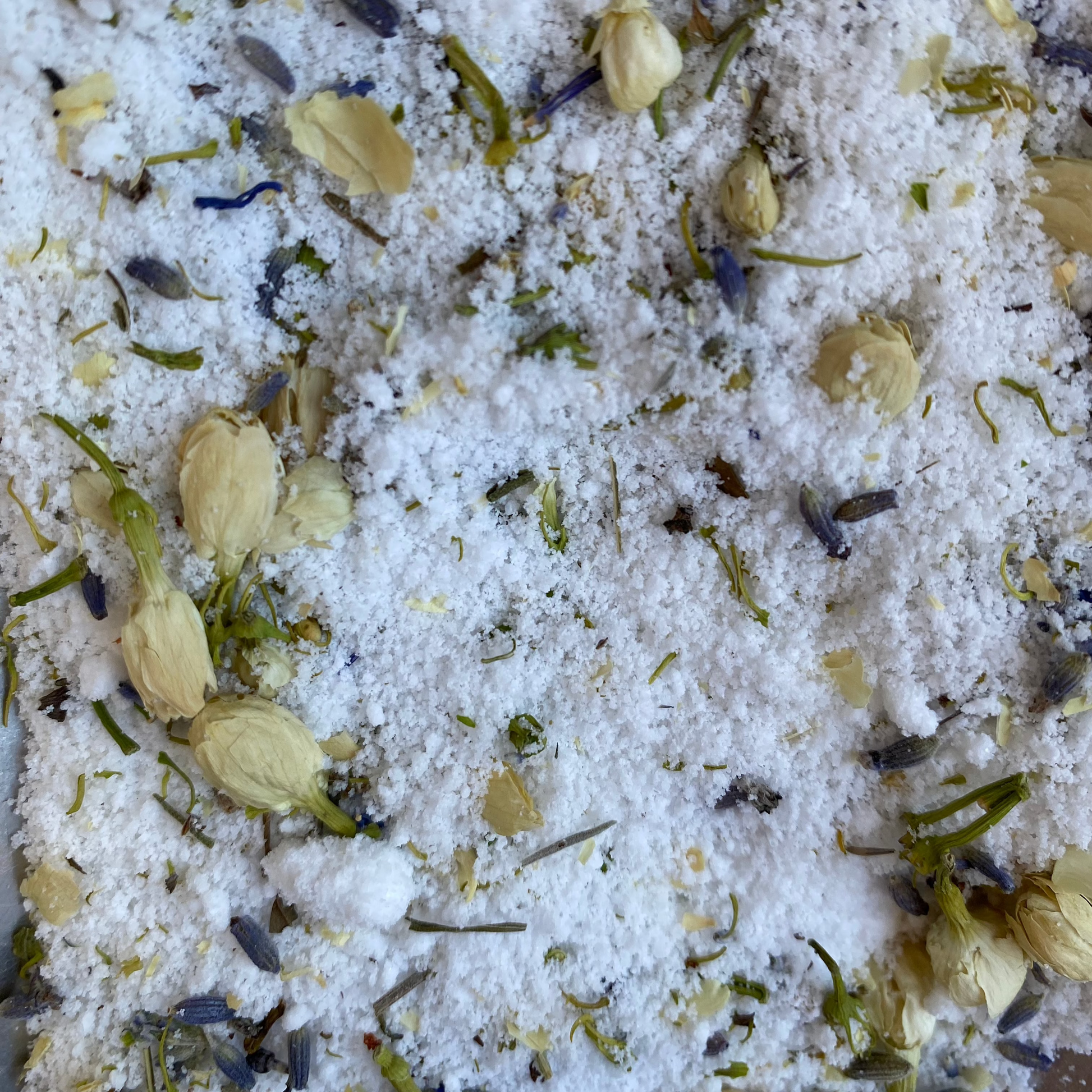This fizzy potion is a beautiful mix of White with dried flowers & Gold Leaf.