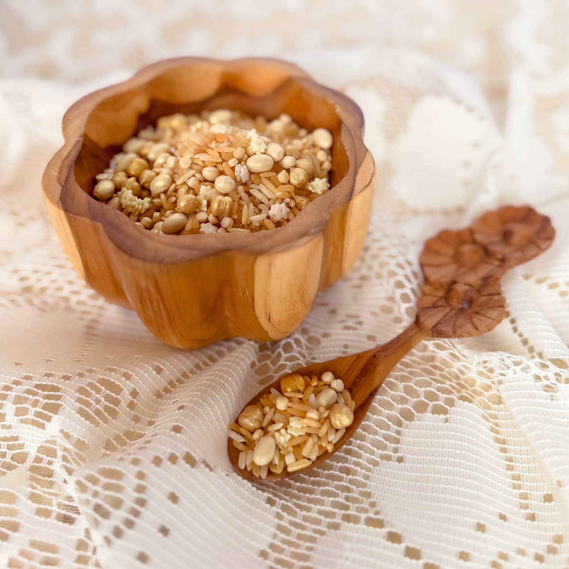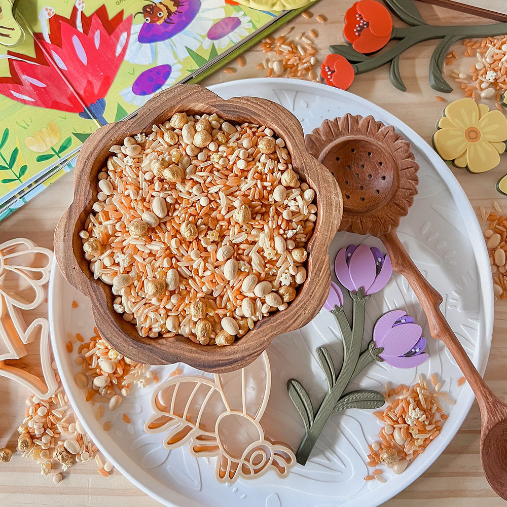 Each jar is filled with around 2 cups of a combination of rice, chickpeas, beans and pasta; designed to provide all the fun of sensory play without any of the mess, making it easy and convenient to enjoy sensory exploration at home.