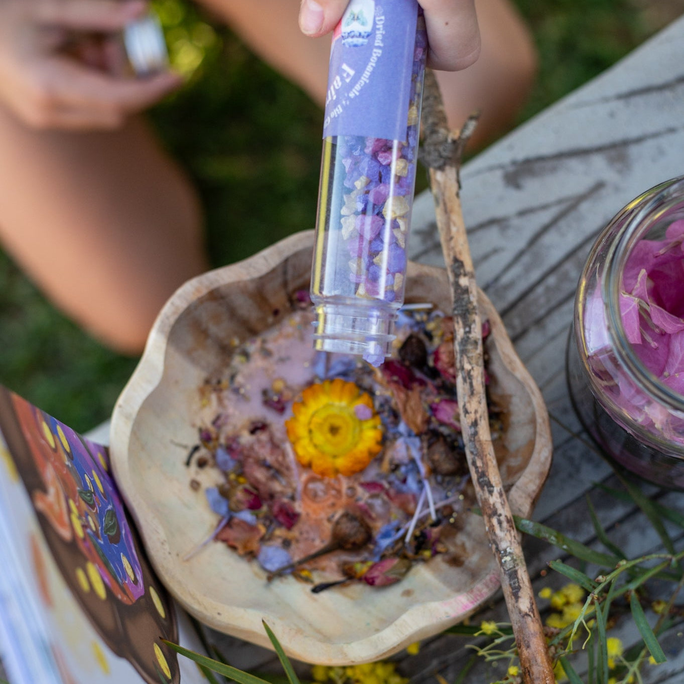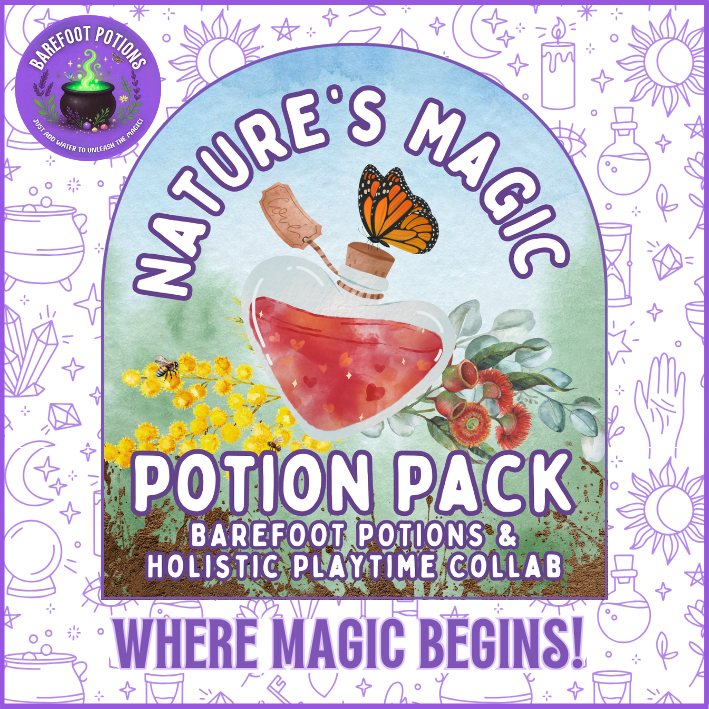 We have teamed up with Holistic Playtime to create a magical potion kit that goes with the beautiful Nature's Magic Potion Book that is available over at on holistic playtimes website head over there to grab you book to go with this magical potion kit.