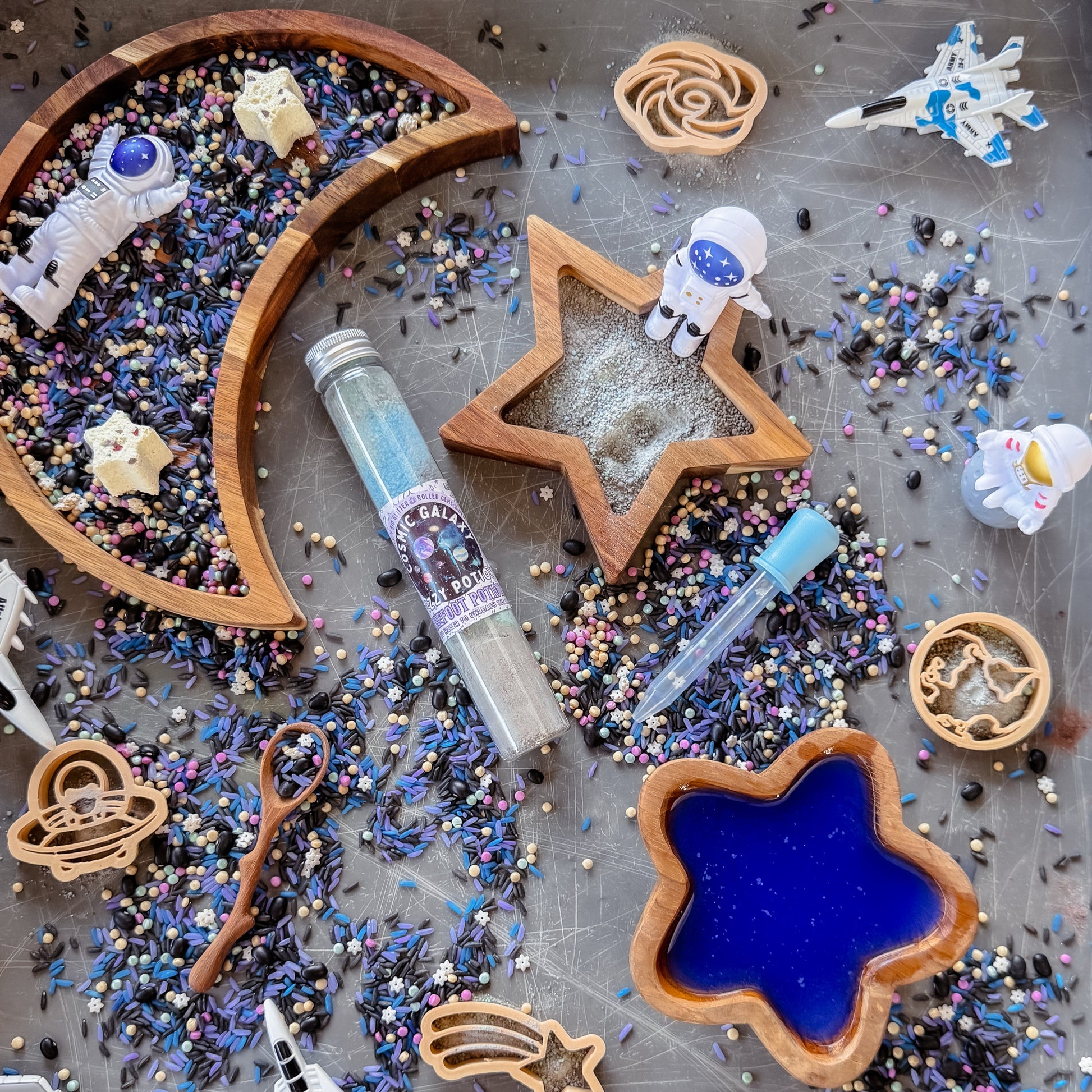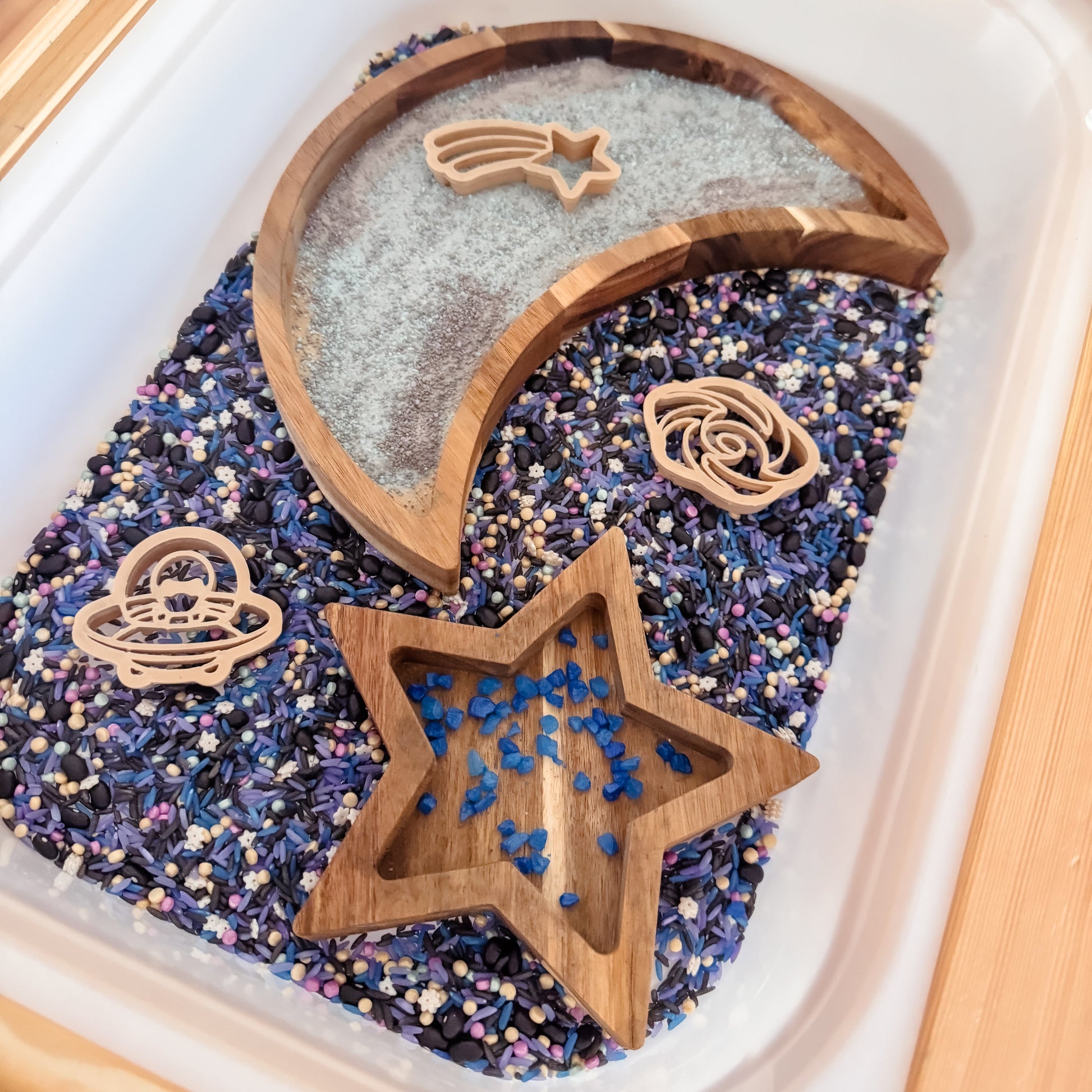 These sensory bases are coloured using natural food colourings and non toxic paint. It contains small parts and children should be supervised while using this activity. Perfect for children 3+.