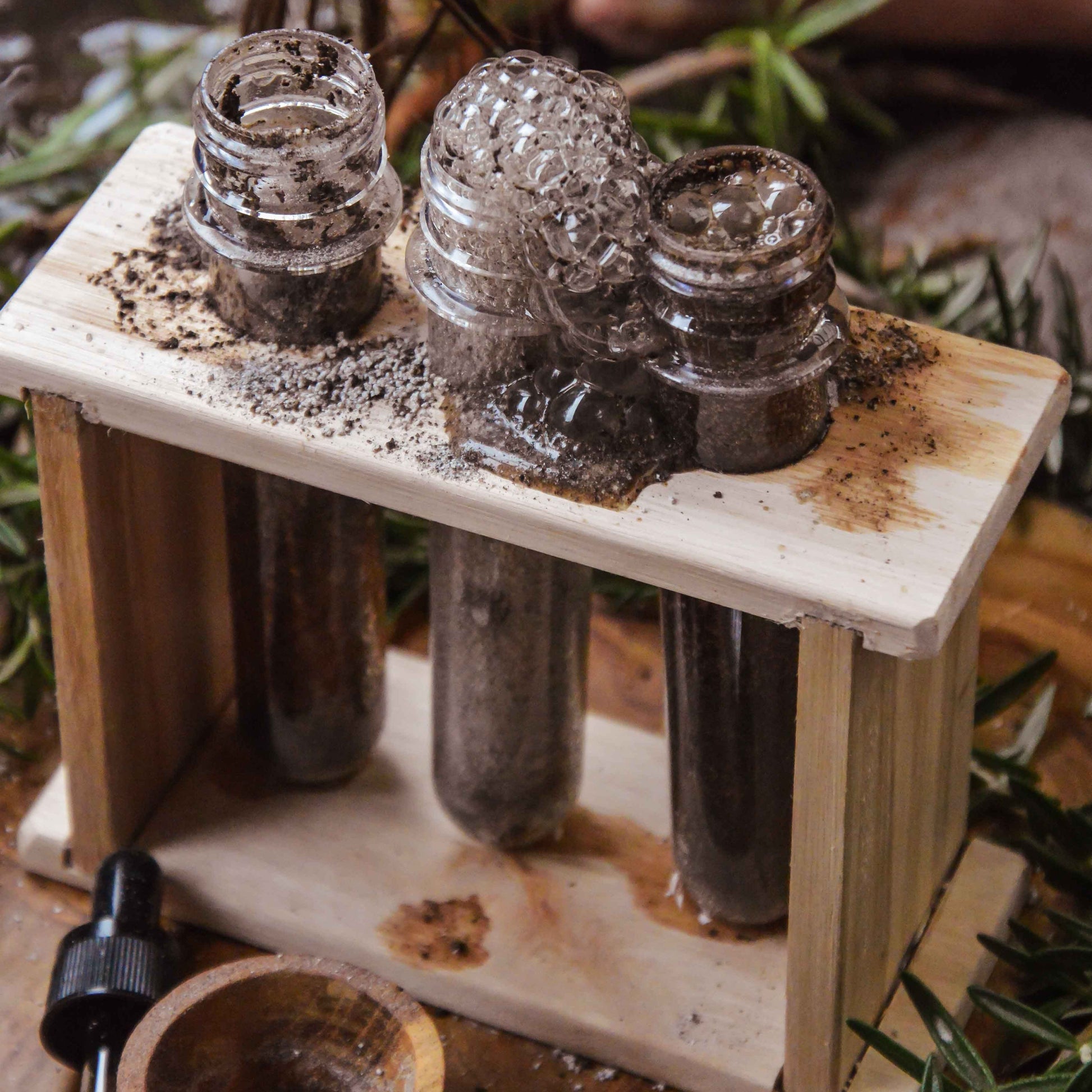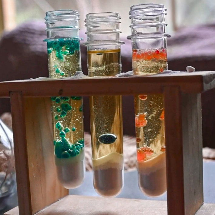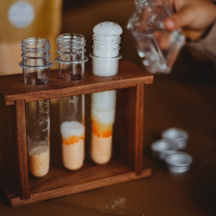Bring curiosity and creativity to life with the Medium Test Tube & Rack. Perfect for science experiments, potions, or seed germination, this handmade set adds endless fun to any playroom or mud kitchen. Crafted from repurposed wood and finished with food-safe wax, each rack boasts unique wood grains and colors. Included are three sturdy plastic test tubes built to withstand many imaginative adventures. Let little scientists explore and experiment with this charming, eco-friendly play essential.